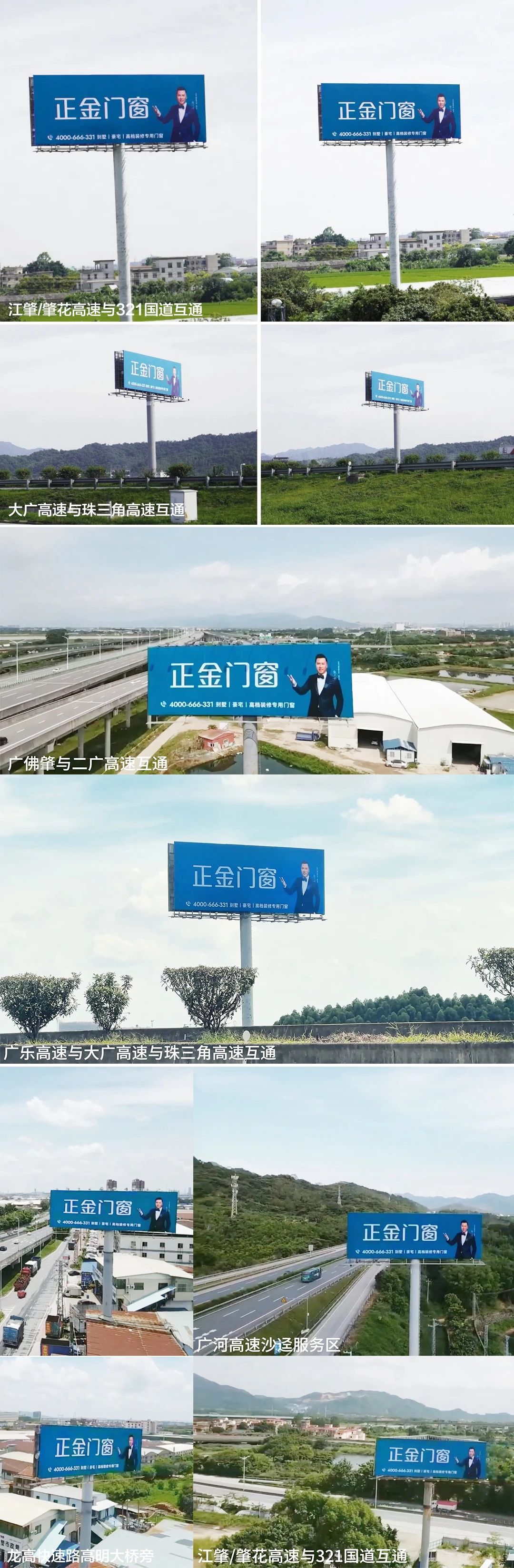 在全媒體時代,精準(zhǔn)把握核心傳播渠道,是品牌塑造的關(guān)鍵。正金門窗深諳此道,戰(zhàn)略性強(qiáng)勢登陸高速公路高炮廣告——這一被譽(yù)為戶外傳播“第一戰(zhàn)場”的核心陣地。