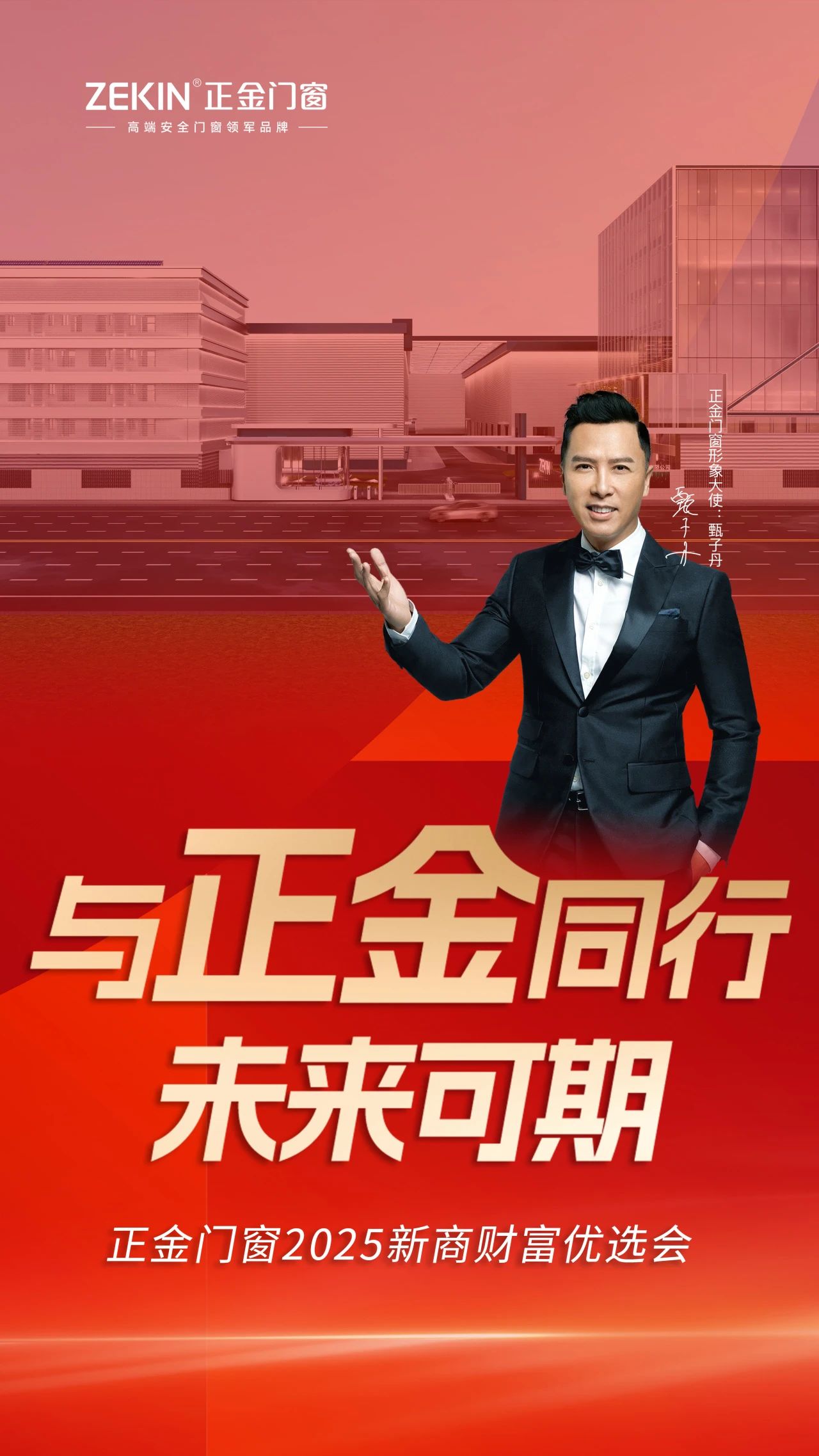 正金門窗攜手**功夫巨星甄子丹為品牌形象代言人,甄子丹代言為品牌注入人格魅力和情感價值,搶占大眾的心智共識,使消費者更加認同正金門窗“甄功夫真品質”的民族品牌屬性。最具咖位形象代言人助力品牌穩居一線行列,以明星資源為品牌撬動巨大流量入口。 正金門窗連續三年榮登中國品牌價值500強,連續三年榮膺中國門窗行業標志性品牌,連續三年高端安全門窗銷量領先。充分彰顯出正金門窗的品牌實力和極高辨識度,是行業發展的引領者與風向標,是被廣大消費者選中的領軍品牌。憑借雄厚品牌實力與行業影響力,精準助力終端門店利潤增長,共享可持續財富盛宴! 正金門窗秉著“行大牌正道 做行業金品”的內核使命,按下互聯網級產銷一體化戰略基地建設的加速鍵! 正金門窗互聯網智造基地的建立,可以使品牌擁有更強大的產品力:依托規模效應與尖端智造,持續推出性能更卓越、設計更前沿、安全等級更高的門窗精品;更極致的交付力:互聯網供應鏈的高效協同,確保訂單響應更快、交付更準時、服務更無憂。 更澎湃的創新力:匯聚互聯網智慧,加速新工藝、新設備和新技術的研發與應用,引領行業安全標準持續升級;更堅實的品牌力:向互聯網市場有力證明中國門窗品牌具備定義高端、主導安全的能力與擔當。 同時自建上下游生產基地。通過冠耀通玻璃、高美晶泳、歐納鋁業、原美肌膚瓷泳、正金門窗、濠江噴涂木紋、瑋豪鋁材、千珈美水性涂料等八大高端安全產業鏈,全產業鏈協同優勢能夠讓正金門窗擁有超強抗風險能力,為加盟投資保駕護航。正金門窗以強大的品牌勢能為您的事業注入強勁動力。 正金門窗為了讓更多消費者了解品牌的新形象和擴大品牌影響力,拉升品牌知名度,以高炮廣告形式密集投放重點高速干線核心路段,品牌強效曝光,實現大范圍輻射,搶占流量制高點。